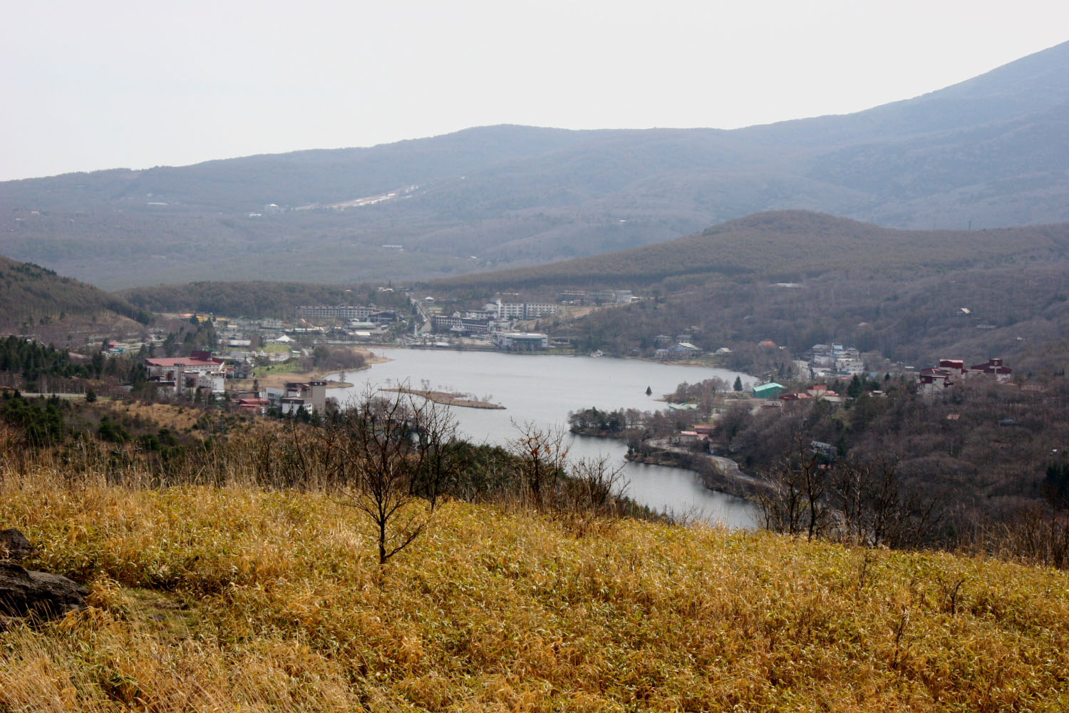 ビーナスラインを登ると、すぐに白樺湖は遠くなっていく。本当は蓼科山にも登山する予定だったのだが、雪がまだまだ深いのと、天候が下り坂なので、登山を中止し、霧ヶ峰&美ヶ原を歩いて帰ることにしたのだ。 |