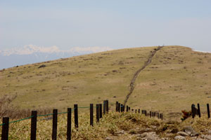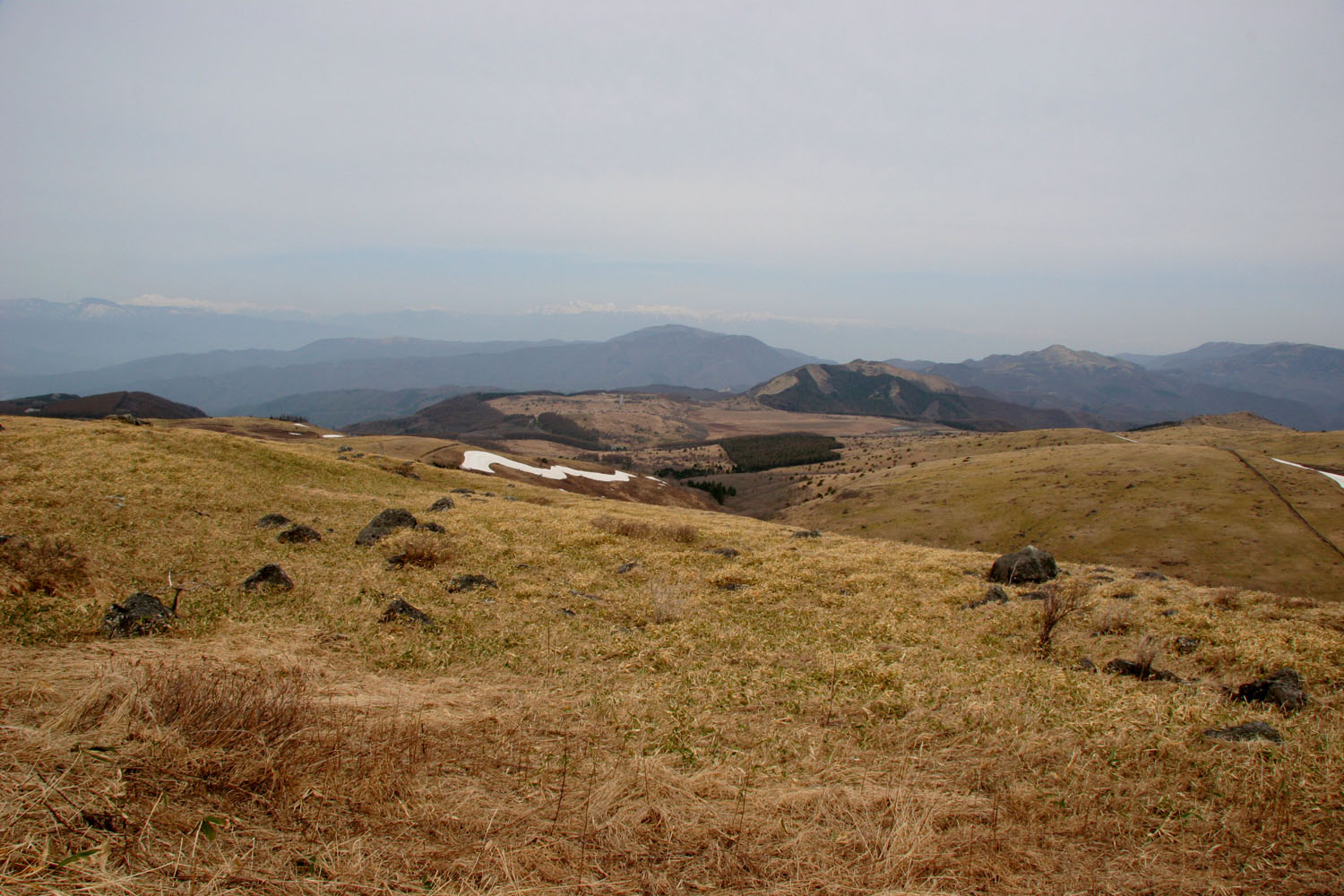 なんか、近くなった気がする。北アルプスがよく見えるようになった。八島湿原もきれいに見えた。しかし、まだ冬色という感じ。 |