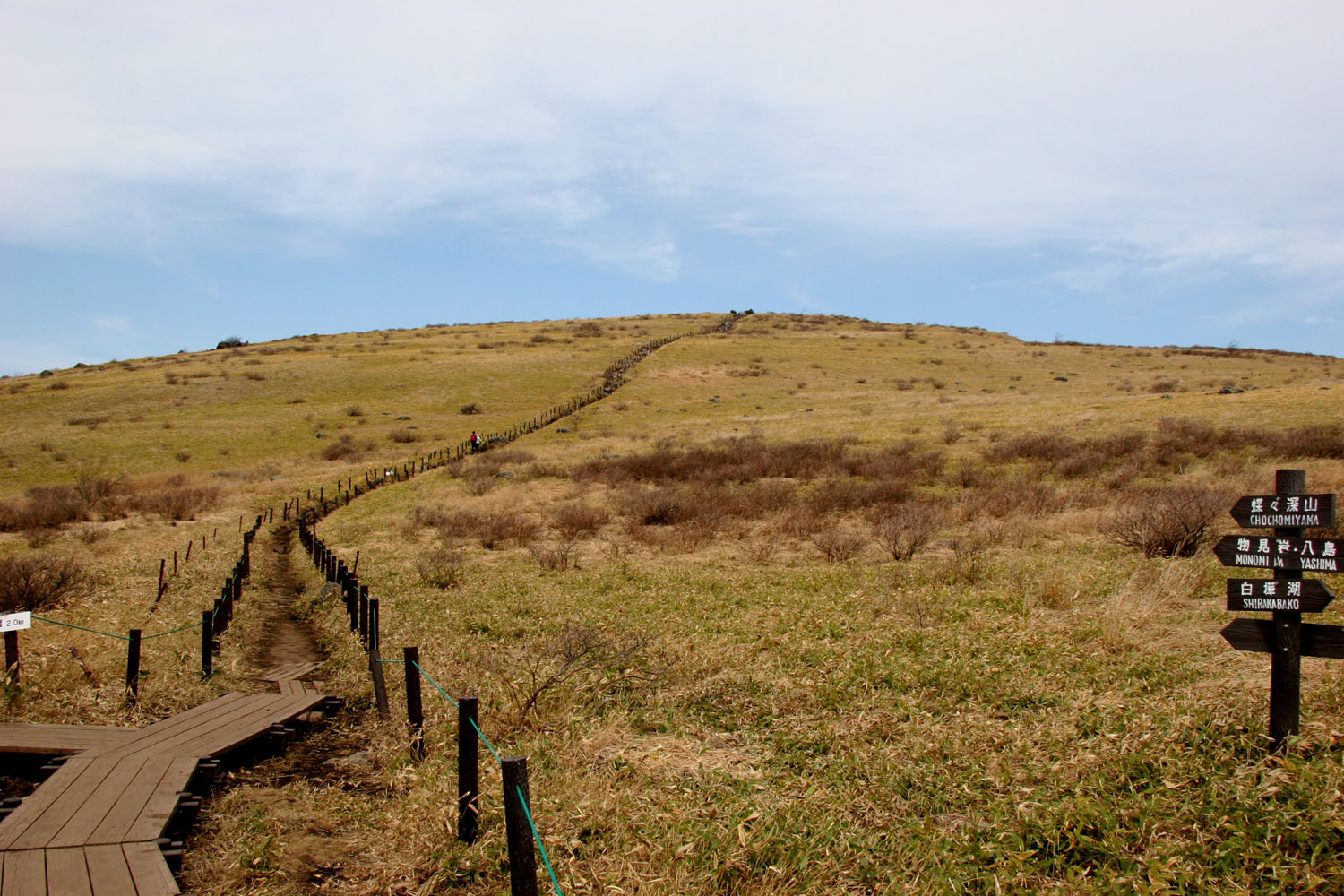 ここまでは本当に楽ちん。こんなに楽に百名山の山頂に建てるとは素晴らしい。しかし、霧ヶ峰の良さは、この山頂の展望のみならず、ここからのトレッキングだったのだ |