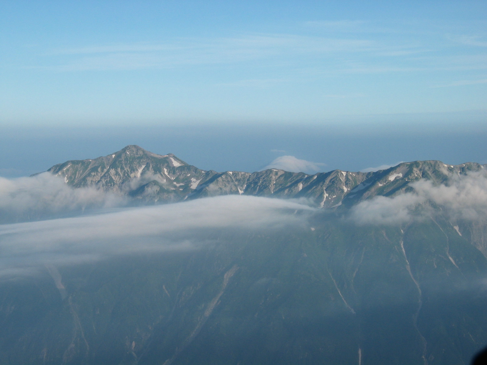 ほぼ水平線の向こうから太陽が見えた。常念岳も三角錐の形で一目でわかる。