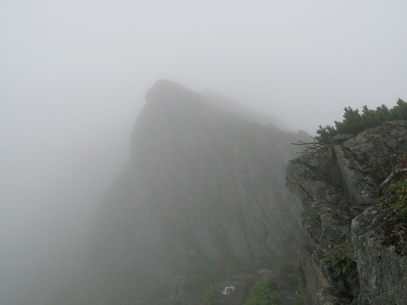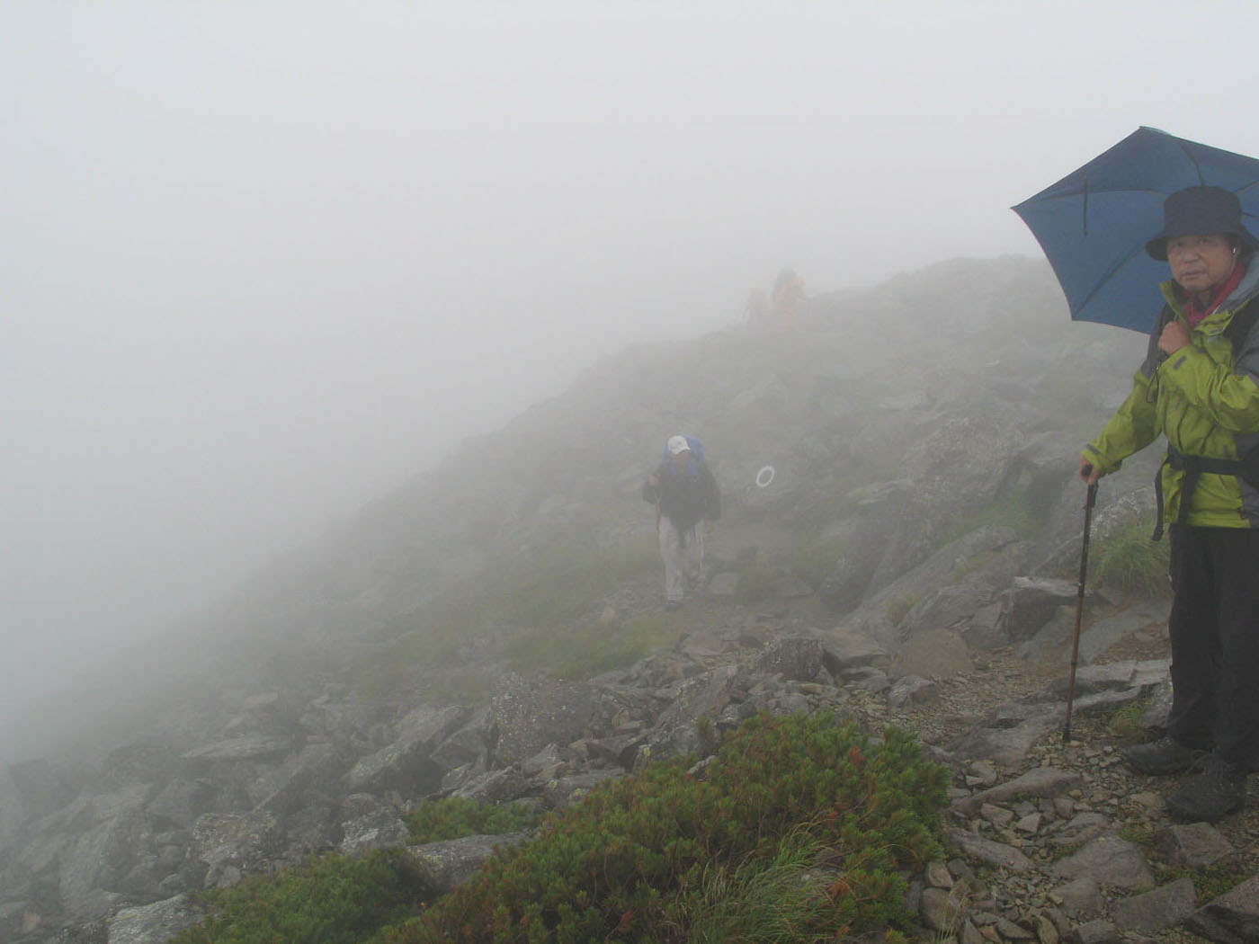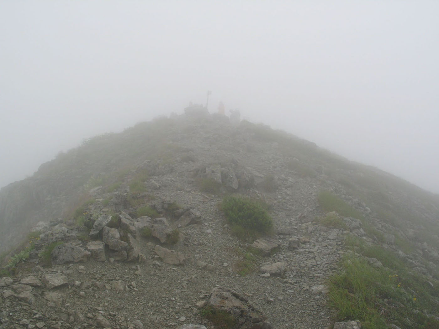 ここからはガスの中の山歩きとなった |
